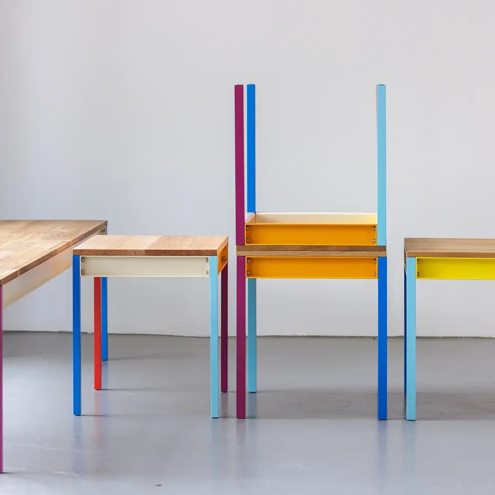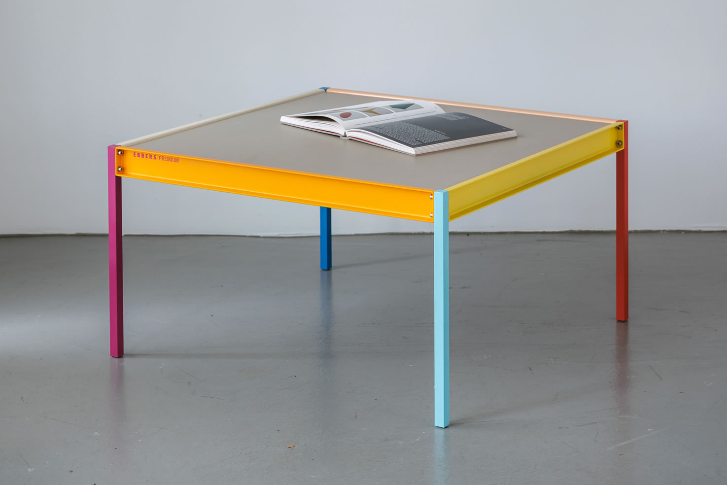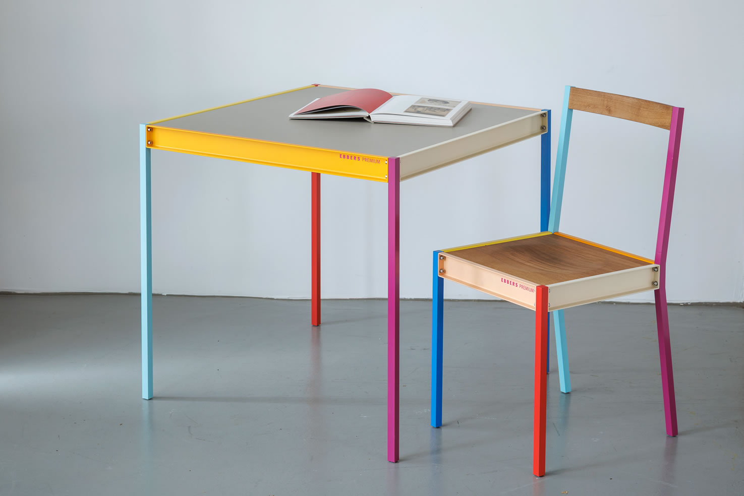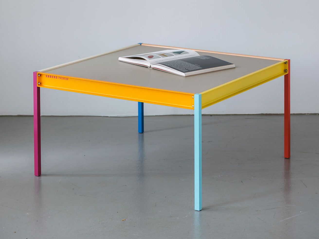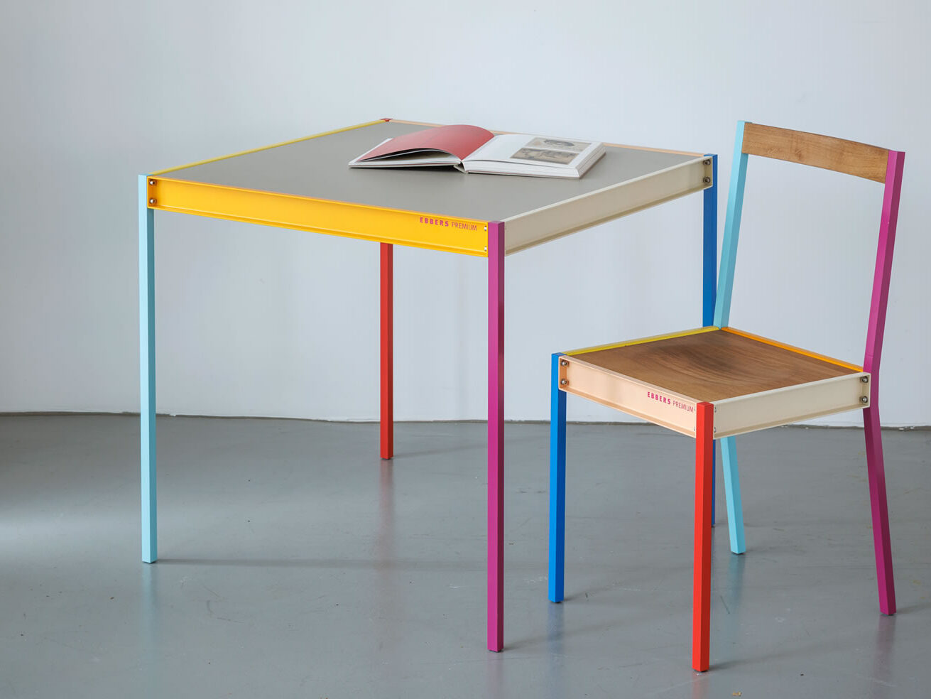 Materialimmanenz ist mir wichtig, Farbe dient nicht als Dekoration. Ich arbeite mit rotbraunen Siebdruckplatten, farbigem Linoleum oder Metall, lackiert oder bemalt. „Form follows fiction“: Schönheit entsteht durch das Zusammenspiel von Funktion, Materialeffizienz und Materialreinheit.