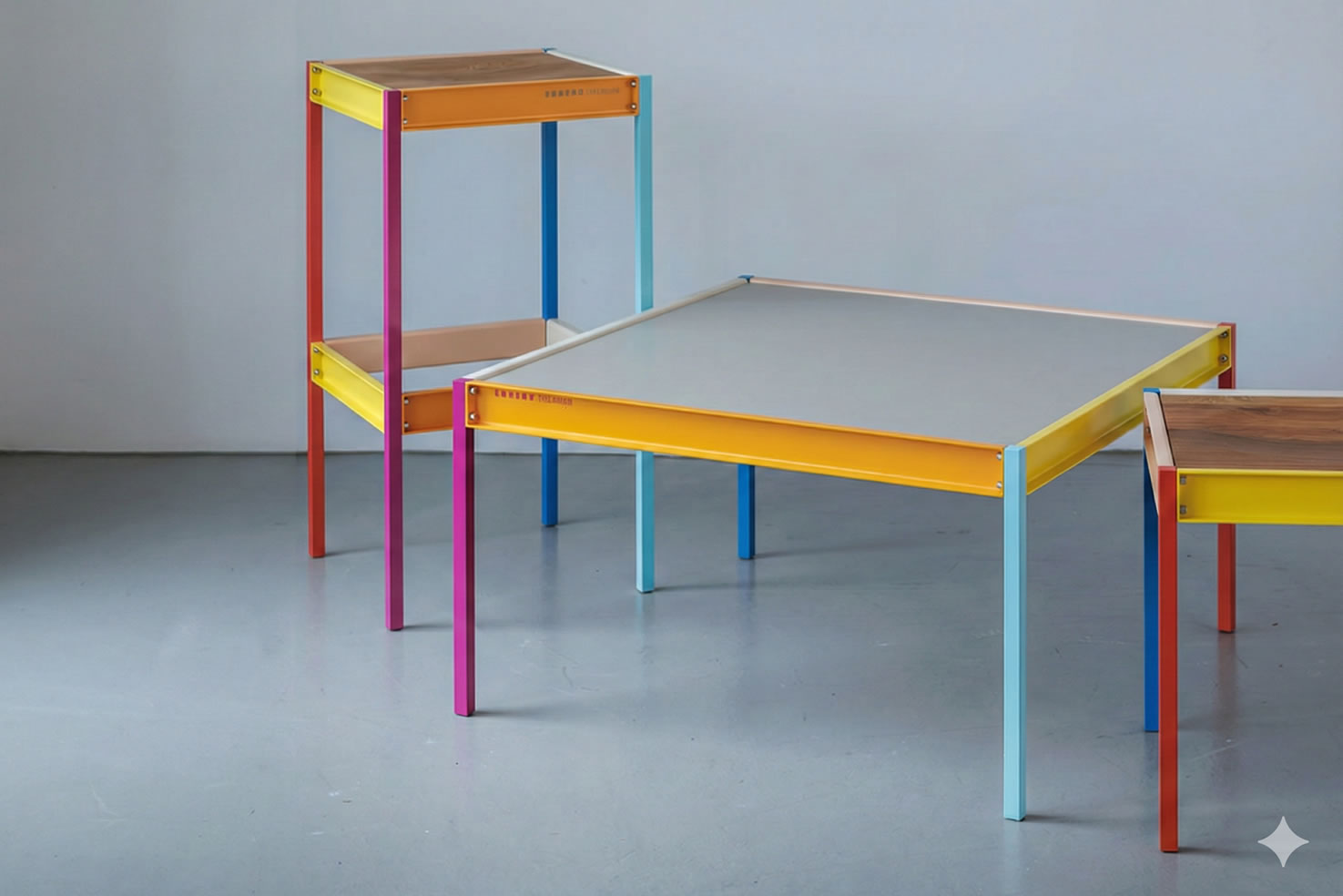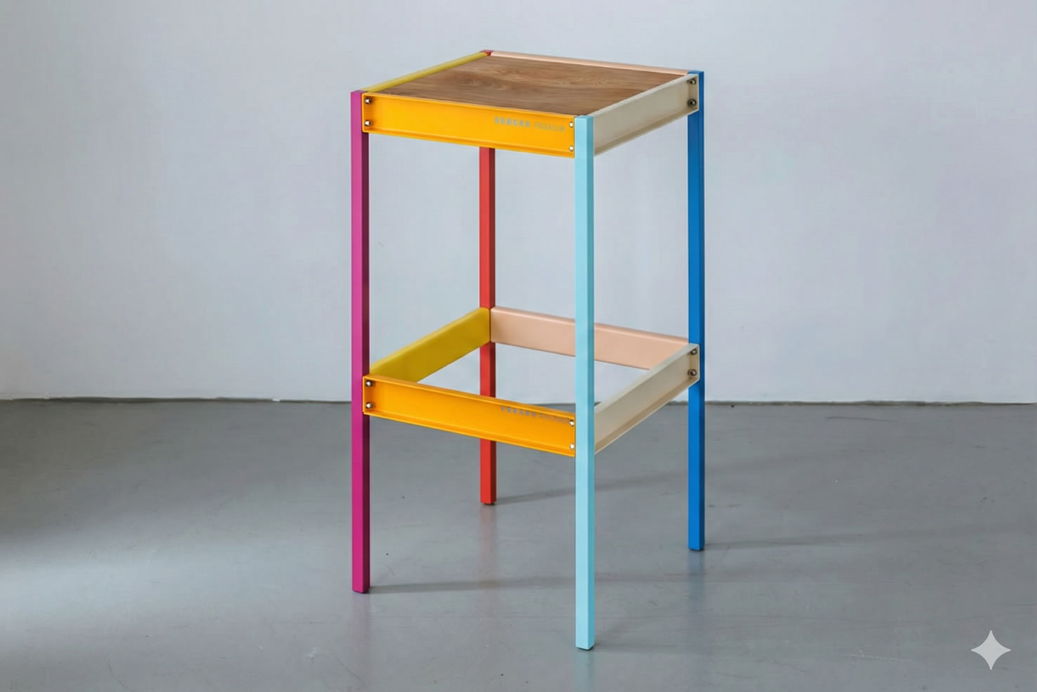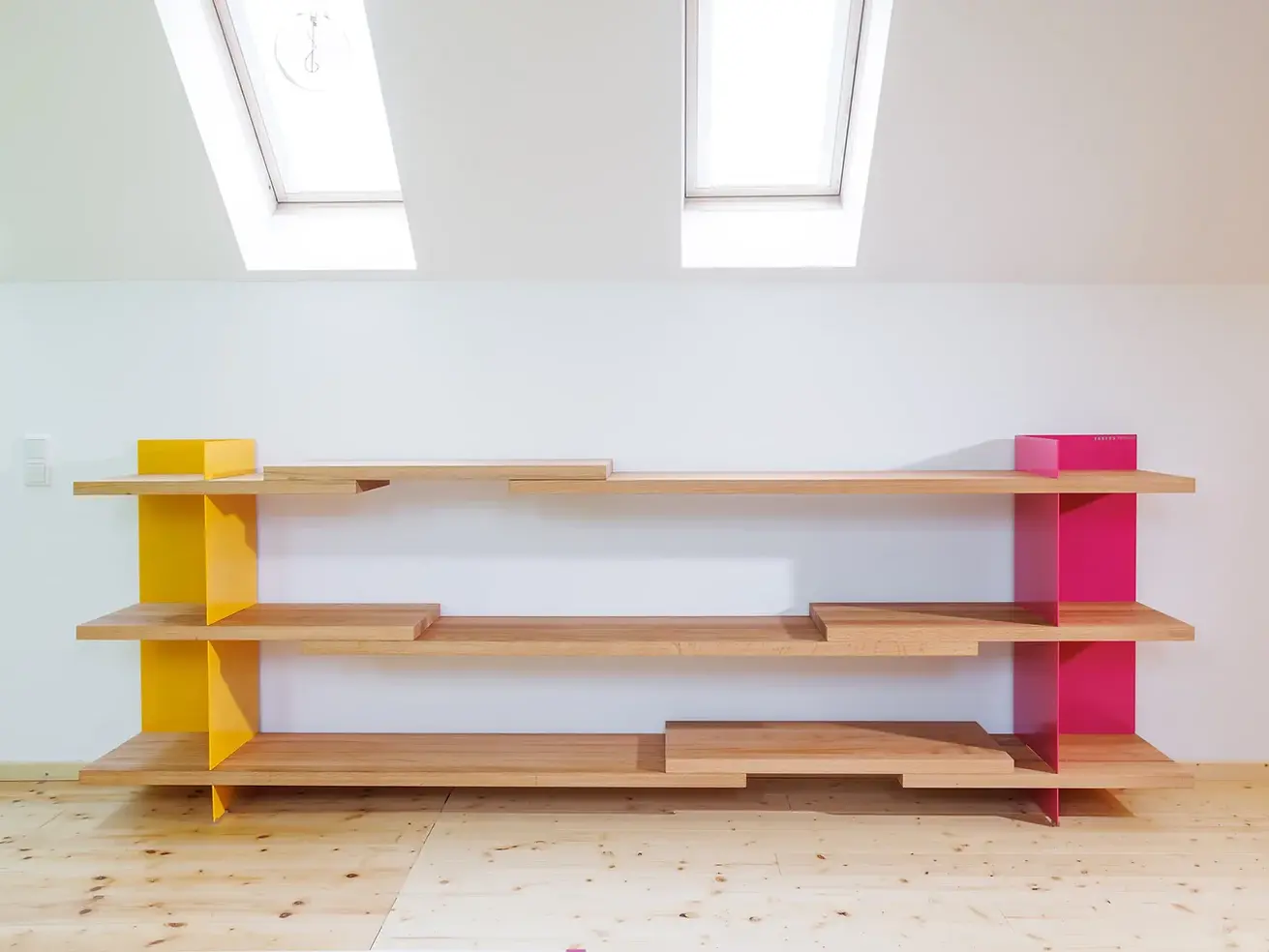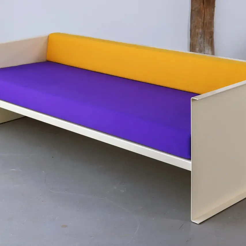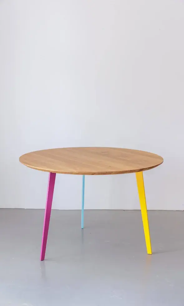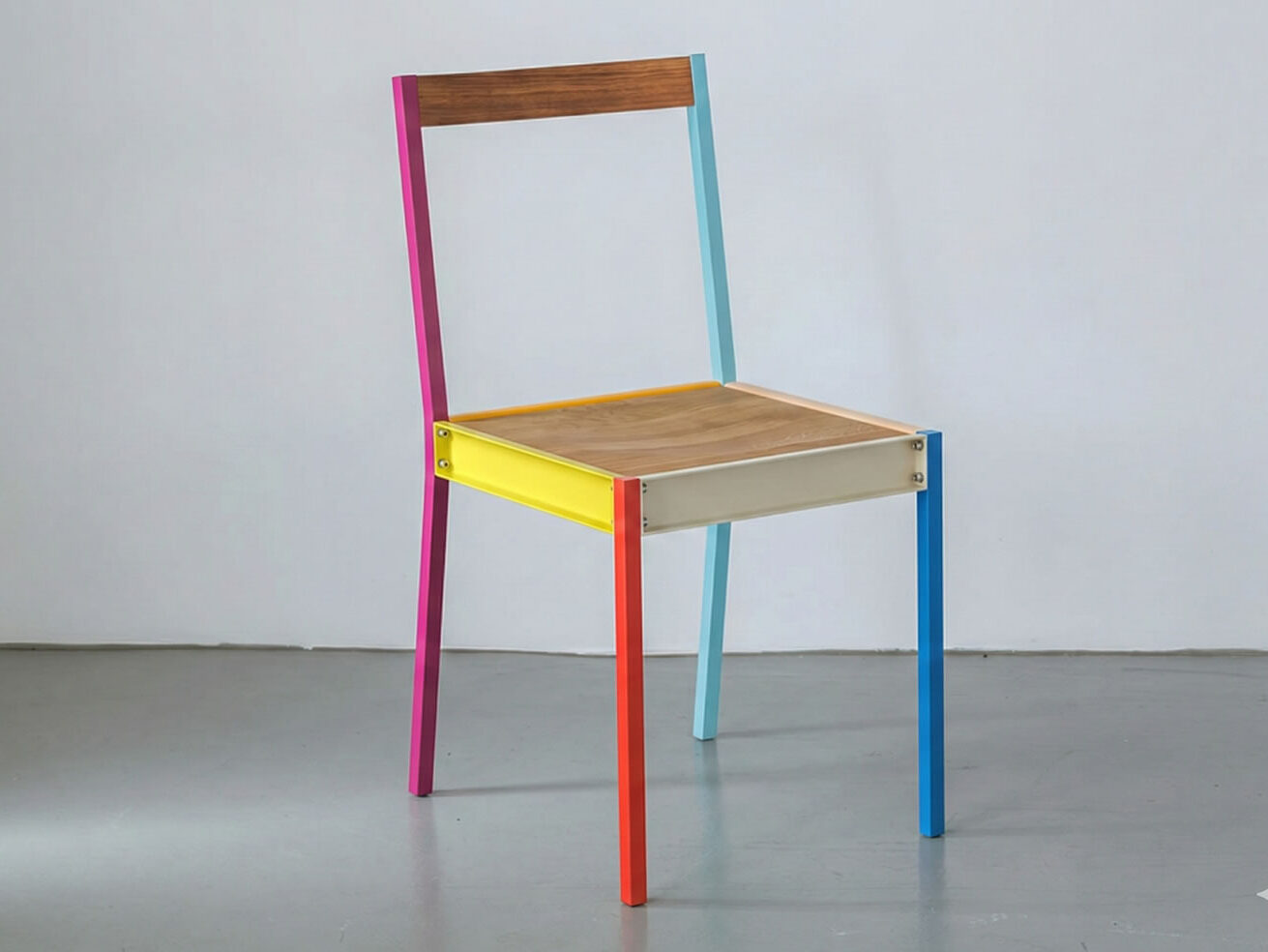 Materialimmanenz ist mir wichtig, Farbe dient nicht als Dekoration. Ich arbeite mit rotbraunen Siebdruckplatten, farbigem Linoleum oder Metall, lackiert oder bemalt. „Form follows fiction“: Schönheit entsteht durch das Zusammenspiel von Funktion, Materialeffizienz und Materialreinheit.